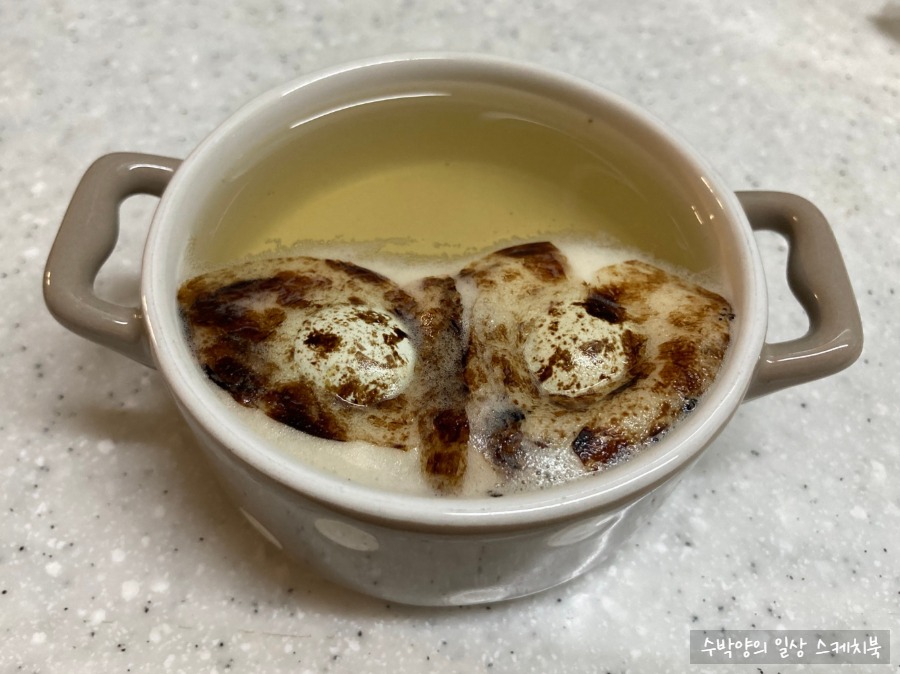 수저로 한 번 뒤집어 줌.
