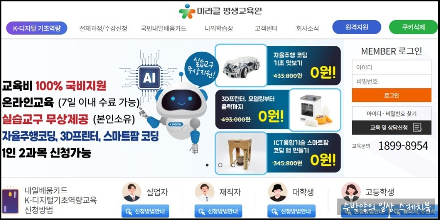이 지원금이 있어야 K-디지털 기초역량 교육을 받을 수 있다고 한다.